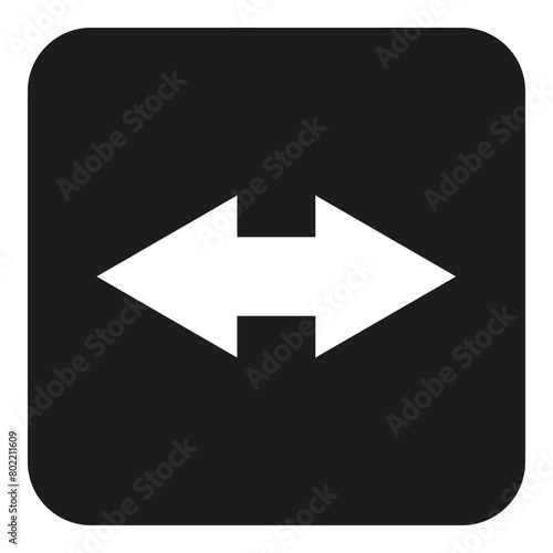 Bidirectional white arrows on black square background icon - stock vector