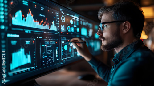 Big data analytics visualizing. Data science and big data technology on virtual screen.