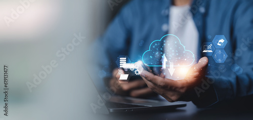 Big data and analytics visualization technology with Database storage cloud technology file data transfer sharing , Networking and internet service concept.