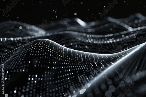Big Data Background, Abstract Digital Technology Flow Pattern, Big Data 3d Particles, Copy Space