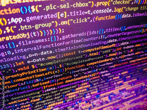 Big data concepts working in cyberspace environment. Selective focus effect. New technology revolution. Real Html code developing screen. Programming Source code photo