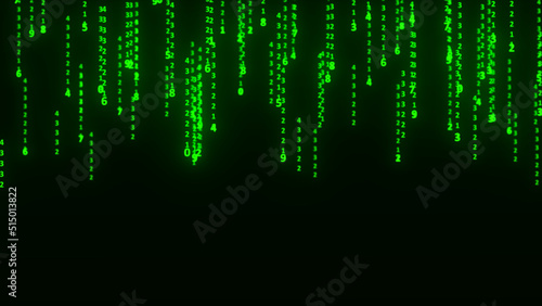 Big data. Hacker concept. Abstract matrix. Computer generated many numbers. 3d rendering