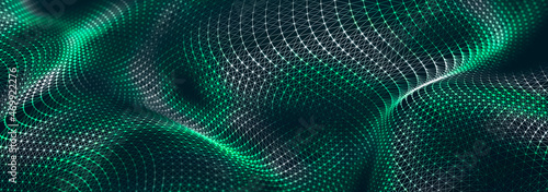 Big data stream. Digital wave with many points. Technology or science banner. 3D rendering.