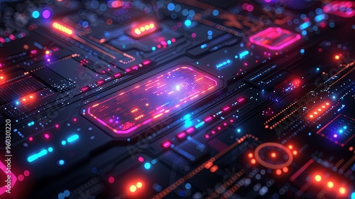Big data technology and data science illustration. Data flow concept. Querying, analysing, visualizing complex information. Neural network for artificial intelligence. Data mining. Business analytics