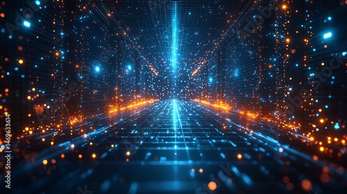 Big data transfer connection simulation platform featuring futuristic fly-through system check analysis and illustration background