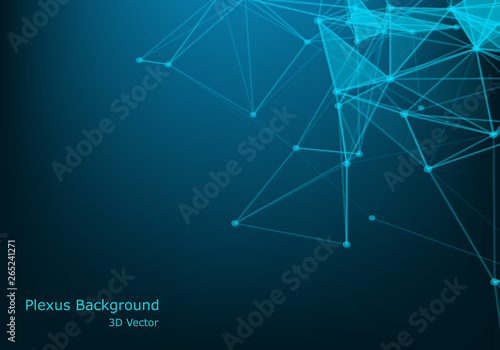 Big data visualization . Abstract vector polygonal background . Molecular bond Broken lights . Triangle Plexus elements . Science, technology concept . Blured molecular particles .
