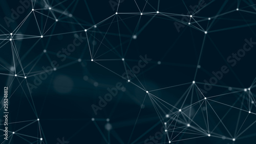 Big data visualization. Abstract background with connecting dots and lines. 3D rendering. High resolution.