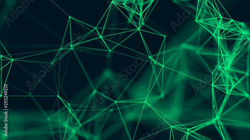Big data visualization. Abstract background with connecting dots and lines. 3D rendering. High resolution.