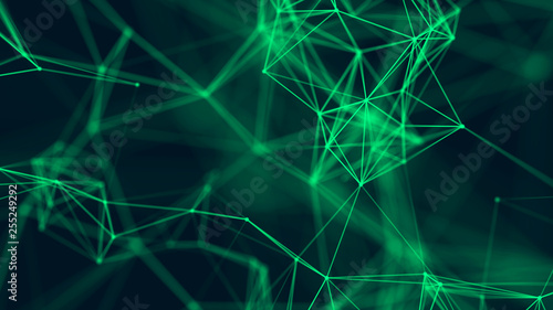 Big data visualization. Abstract background with connecting dots and lines. 3D rendering. High resolution.