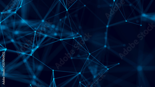 Big data visualization. Abstract background with connecting dots and lines. 3D rendering. High resolution.