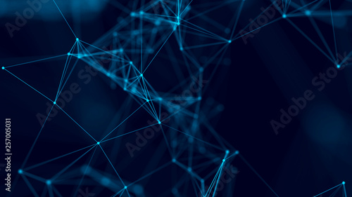 Big data visualization. Abstract background with connecting dots and lines. 3D rendering. High resolution.