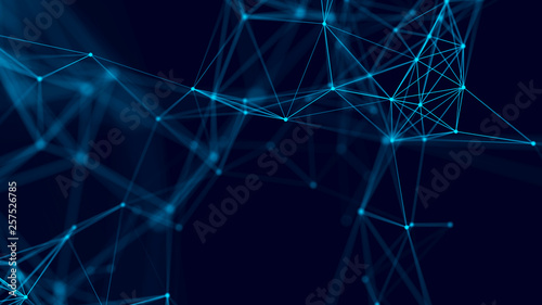Big data visualization. Abstract background with connecting dots and lines. 3D rendering. High resolution.