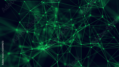 Big data visualization. Abstract background with connecting dots and lines. 3D rendering. High resolution.