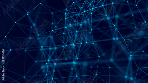 Big data visualization. Abstract background with connecting dots and lines. 3D rendering. High resolution.