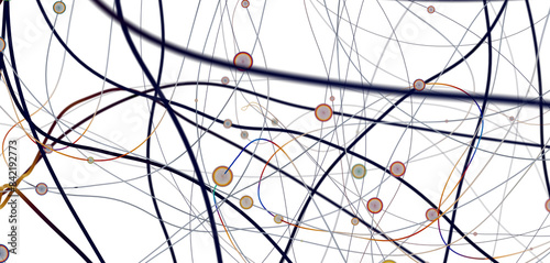 Big data visualization. Network connection structure with chaotic distribution of points and lines. 3D rendering.
