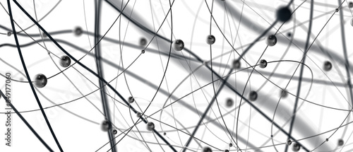 Big data visualization. Network connection structure with chaotic distribution of points and lines. 3D rendering.