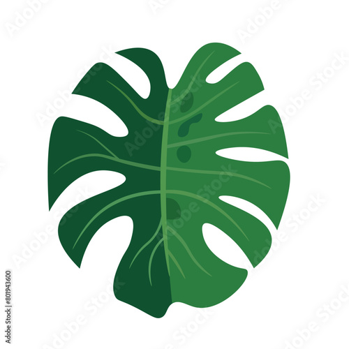 Big monstera leaf illustration, split leaf philodendron, isolated on white background - Vector