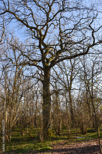 Big oak tree by early springtime