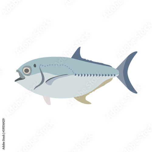 ギンガメアジ(ヒラアジ)。フラットなベクターイラスト。