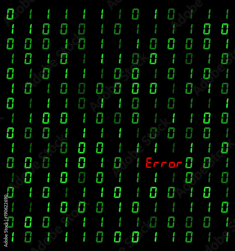 binary background with error sign on black background