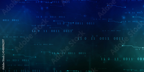 Binary Code Background, Digital Abstract technology background, flowing number one and zero text in binary code format in technology background. Internet Big data Concept