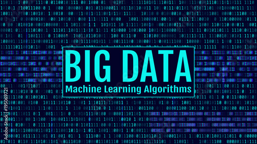Binary code, blue digits on the computer screen. BIG DATA Machine Learning Algorithms. Analysis of Information Minimalistic Design. Science, Technology Background. Format 16:9