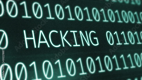 Binary code digits background with hacking inscription