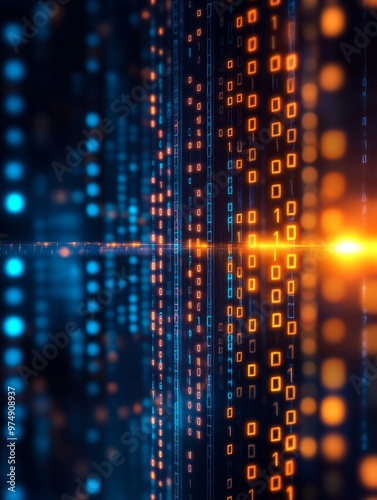Binary Code Flow - Cybersecurity and Data Security, abstract digital background with a futuristic concept of data transfer, secure data, network security, and information technology.