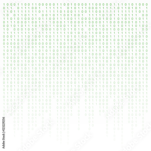 Binary code green and white background with digits on screen. Algorithm , data , decryption encoding, row matrix.