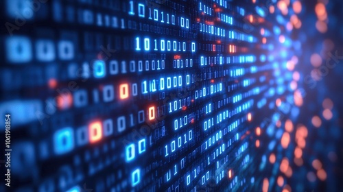 Binary Code Interface with Glowing Blue Lights.
