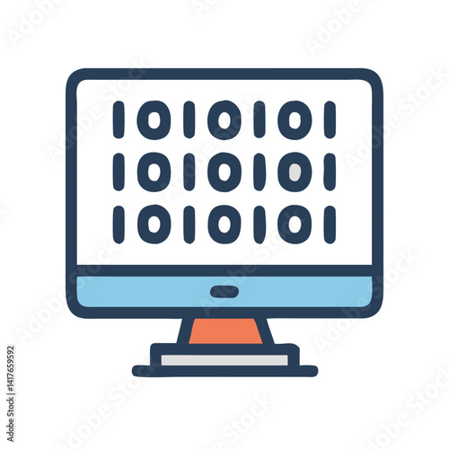 Binary Code Monitor Icon Representing Digital Data and Computer Processing