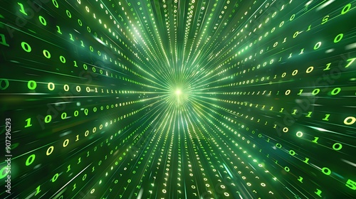 Binary Code Numbers in Green Digital Matrix Abstract Background