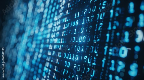 Binary code on a blue background. The concept of hacking and malware.