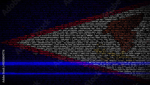 Binary code on flag of American Samoa. Program source code or Hacker concept on American Samoan flag. American Samoa digital technology security, hacking or programming