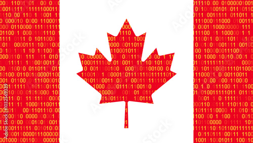 Binary code on flag of Canada. Program source code or Hacker concept on Canadian flag. Canada digital technology security, hacking or programming