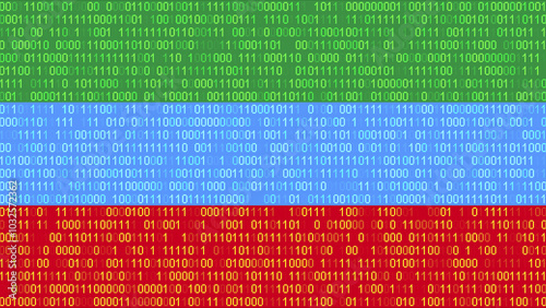 Binary code on flag of Dagestan. Program source code or Hacker concept on Dagestani flag. Dagestan digital technology security, hacking or programming