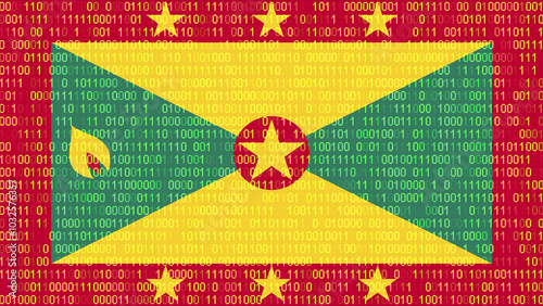 Binary code on flag of Grenada. Program source code or Hacker concept on Grenadian flag. Grenada digital technology security, hacking or programming