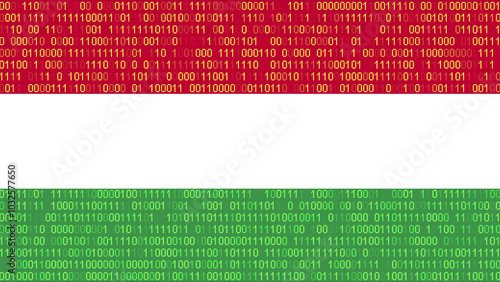 Binary code on flag of Hungary. Program source code or Hacker concept on Hungarian flag. Hungary digital technology security, hacking or programming