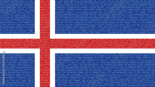 Binary code on flag of Iceland. Program source code or Hacker concept on Icelandic flag. Iceland digital technology security, hacking or programming