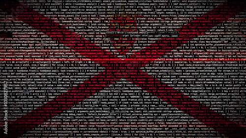Binary code on flag of Jersey. Program source code or Hacker concept on Jersey flag. Jersey digital technology security, hacking or programming