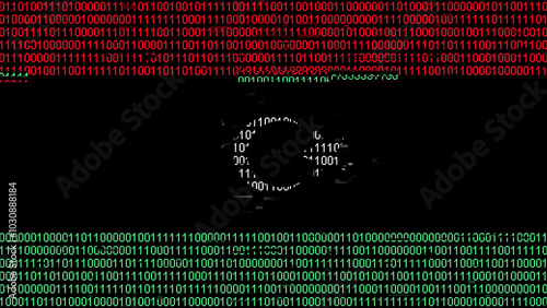 Binary code on flag of Libya. Program source code or Hacker concept on Libyan flag. Libya digital technology security, hacking or programming