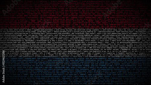 Binary code on flag of Luxembourg. Program source code or Hacker concept on Luxembourg flag. Luxembourg digital technology security, hacking or programming