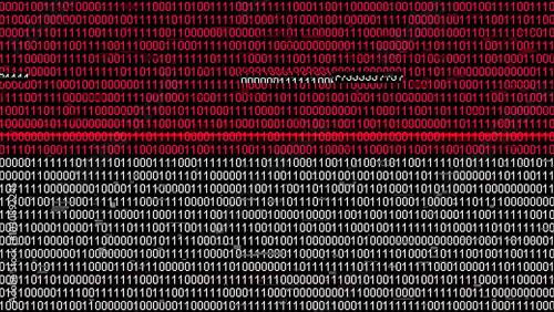 Binary code on flag of Monaco. Program source code or Hacker concept on Monegasque flag. Monaco digital technology security, hacking or programming