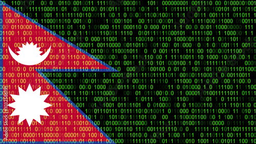 Binary code on flag of Nepal. Program source code or Hacker concept on Nepali flag. Nepal digital technology security, hacking or programming
