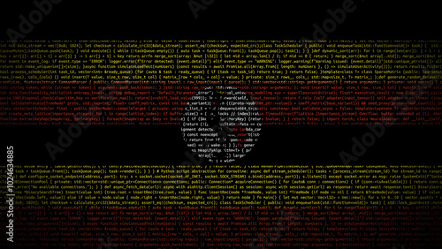 Binary code on flag of Uganda. Program source code or Hacker concept on Ugandan flag. Uganda digital technology security, hacking or programming