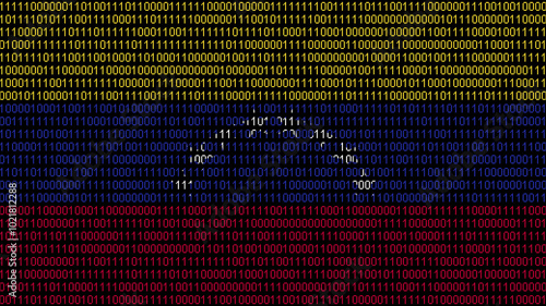 Binary code on flag of Venezuela. Program source code or Hacker concept on Venezuelan flag. Venezuela digital technology security, hacking or programming concept.