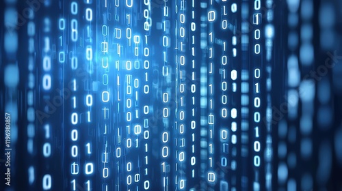 Binary code stream, digital rain background, data flow, technology concept, website banner