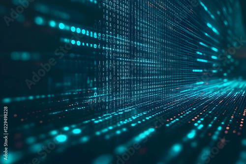 Binary Code Stream Flows Through Cyberspace with Futuristic Technology and Data Analysis