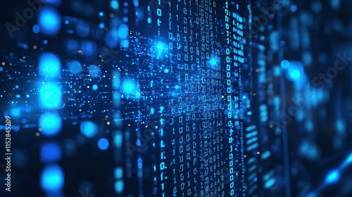 Binary Code Stream on Blue Background