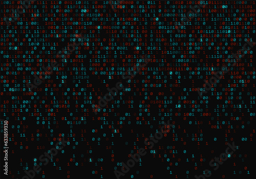Binary computer code. Cyber background constructed with numbers one and zero. Abstract visualization of programming. Vector illustration.